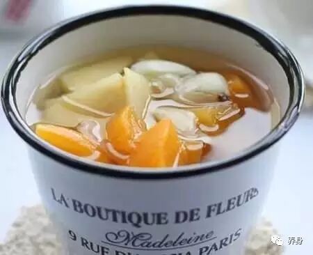 做法:蘋果洗凈,切塊備用。山藥、麥芽、芡實洗凈與蘋果一同入鍋,加適量水,大火煮沸,小火熬煮1.5小時。