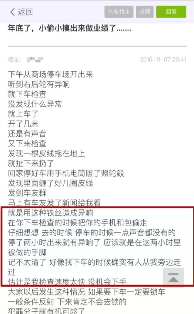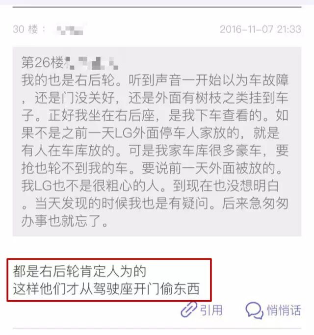 而小賊之所以選擇動(dòng)右后輪,是因?yàn)檫@個(gè)位置,跟駕駛室門成一個(gè)直線,恰好是視野最差的角度。包括感應(yīng)鑰匙,小賊都考慮進(jìn)去了……