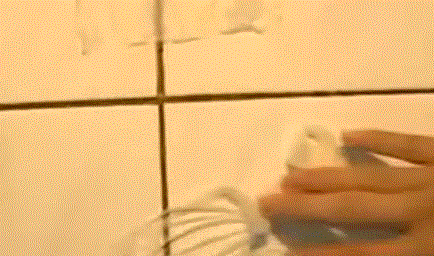 先將水和醋兌成醋水,再放入紙巾浸濕、擰干,然后貼到被電吹風吹熱的墻壁上。等待5分鐘,讓醋水充分將油污溶解。