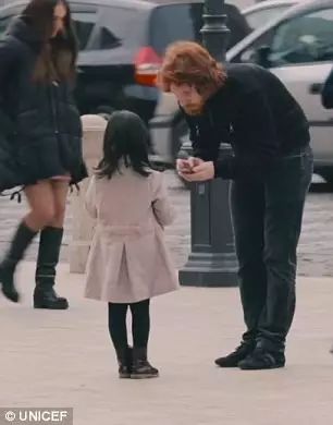 這是聯合國兒童基金會的一個試驗,他們要測試同一個小孩如果以穿得漂亮和臟破的兩種形象獨自走在大街上,路人是否都會留意和關心這個看似迷路的孩子。